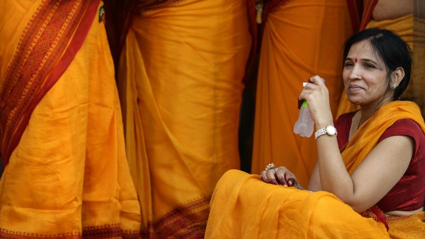 Την ίδια ώρα στο Μουμπάι της Ινδίας μια άλλη γυναίκα συμμετέχει στις διαδηλώσεις για ενδυνάμωση της θέσης της γυναίκας στην κοινωνία.