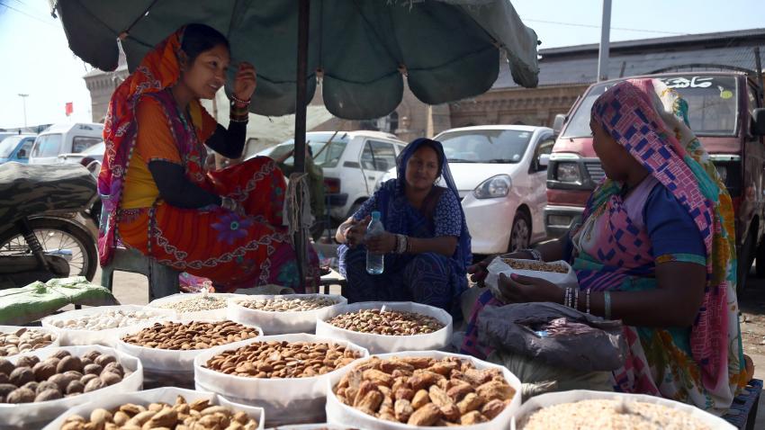 Πακιστάν. Γυναίκες πωλούν στους δρόμους ξηρούς καρπούς και παστά φρούτα.