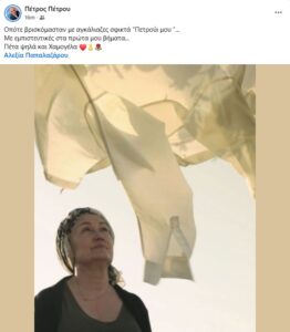 Την τραγική είδηση γνωστοποίησε στα μέσα κοινωνικής δικτύωσης η αδερφή της, Μαρία Παπαλαζάρου Φράγκου.
