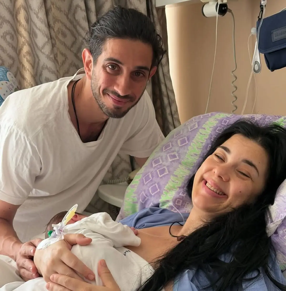 Στο στιγμιότυπο, η Άννα ποζάρει με το μωρό στην αγκαλιά της και τον σύζυγό της στο πλευρό της, και οι τρεις με χαμόγελα γεμάτα ευγνωμοσύνη και συγκίνηση.
