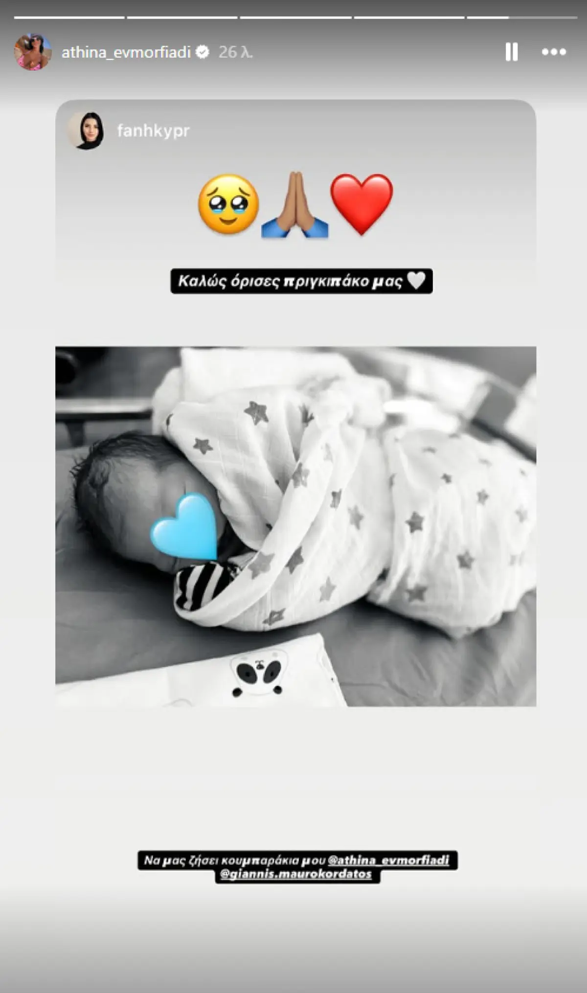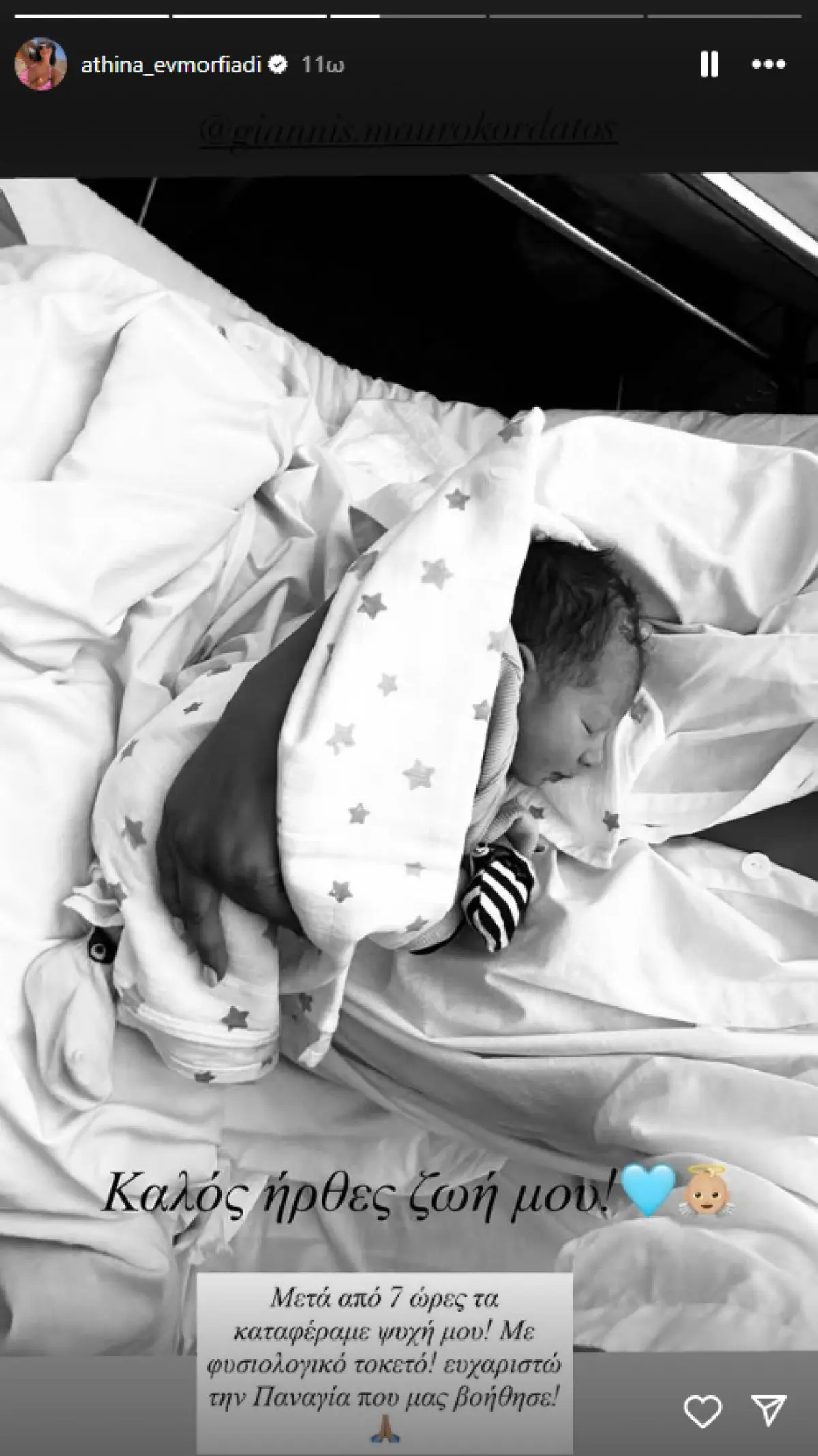 «Καλώς ήρθες, ζωή μου! Μετά από 7 ώρες τα καταφέραμε, ψυχή μου. Ευχαριστώ την Παναγία που ήταν δίπλα μας!», έγραψε συγκινημένη.
