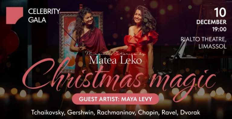 Στις 10 Δεκεμβρίου ετοιμάζεται μια βραδιά εξαιρετικής μουσικής και εορταστικής ατμόσφαιρας στο Θέατρο Ριάλτο στη Λεμεσό. Στο επίκεντρο της βραδιάς βρίσκεται η διεθνούς φήμης Κροάτισσα πιανίστρια Matea Leko, της οποίας οι αριστοτεχνικές ερμηνείες έχουν μαγέψει το κοινό σε όλη την Ευρώπη. Η Λεμεσός ακόμη θυμάται την εντυπωσιακή εμφάνισή της στο αρχαίο αμφιθέατρο του Κουρίου, μαζί με τον βιολονίστα Yury Revich.