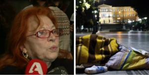 Advertisement«Δεν αντέχω να βλέπω τους Έλληνες, γιατί τους Έλληνες βλέπω, να κοιμούνται στα πεζοδρόμια, μέσα στη στοά. Δεν μπορώ, υποφέρω πολύ. Εγώ βλέπω τους Έλληνες, οι ξένοι τους πιο πολλούς τους έχουμε βολέψει! Κοιτάμε να τους βολεύουμε γιατί θεωρούμε ότι δεν είναι καλό και φυσικά να τους φροντίσουμε τους ανθρώπους, αλλά δεν μπορούμε να πετάμε τους Έλληνες.
