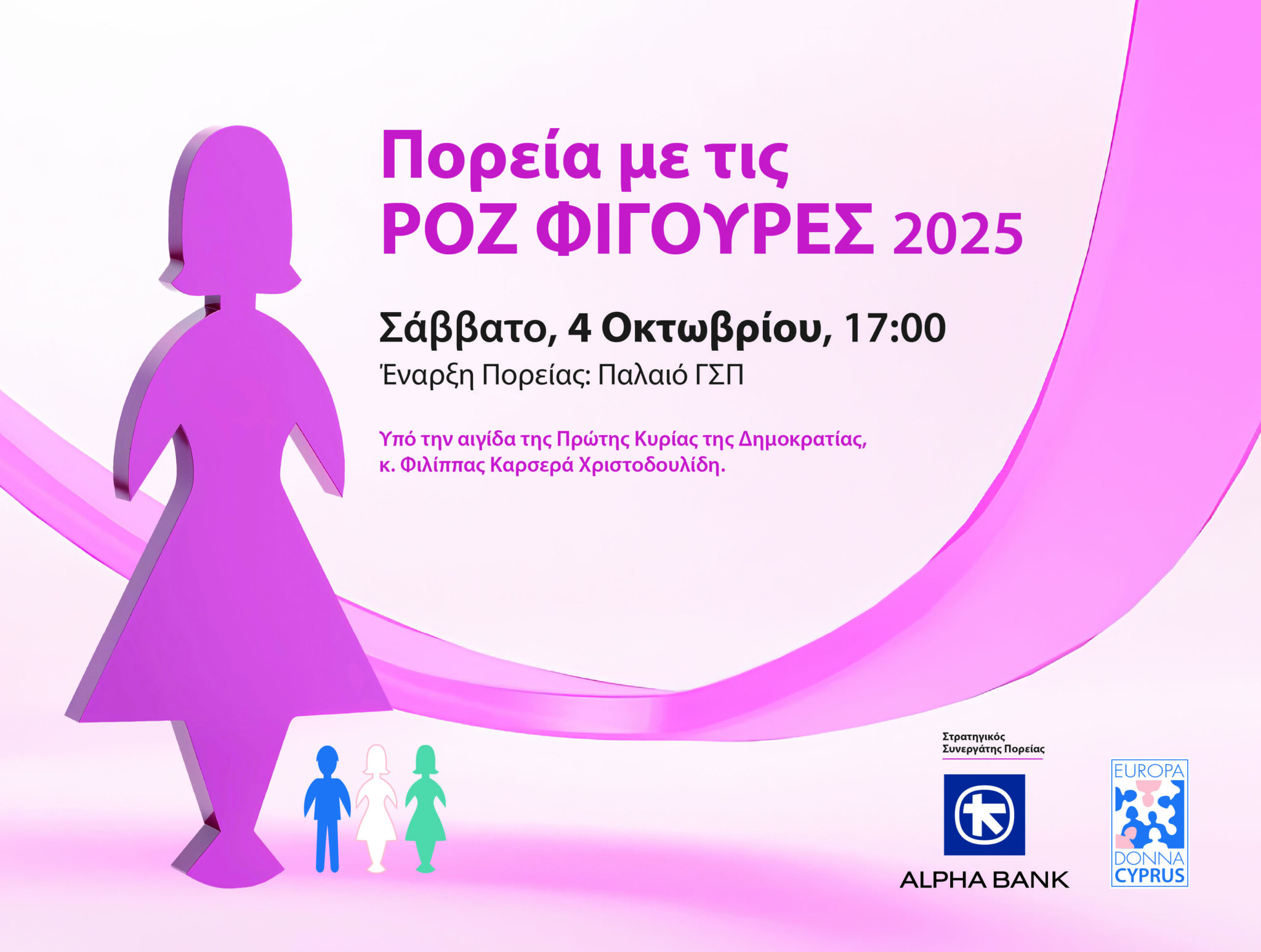 Όλοι μαζί μια μεγάλη αλυσίδα ζωής για την 20η πορεία με τις Ροζ φιγούρες της Europa Donna και σε πρώτο πλάνο οι γυναίκες που δίνουν το δικό τους αγώνα ζωής.
