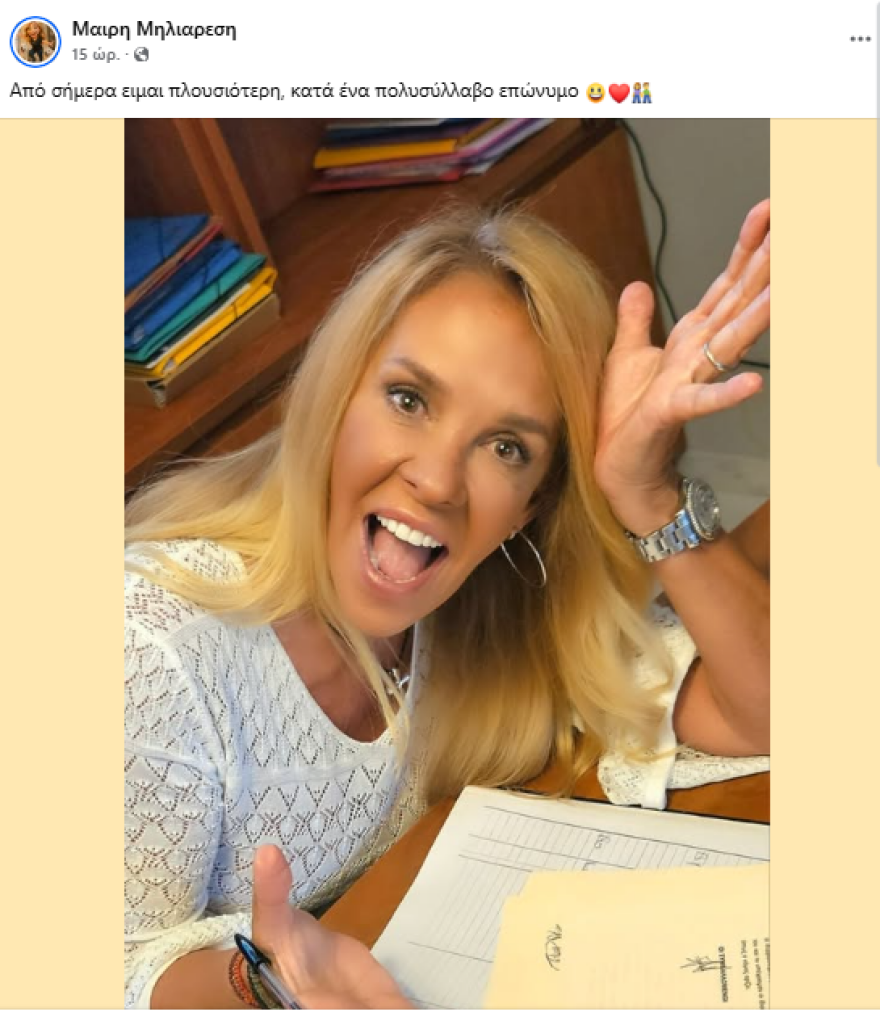 Στη λεζάντα που συνοδεύει την ανάρτησή της, έγραψε: «Από σήμερα είμαι πλουσιότερη, κατά ένα πολυσύλλαβο επώνυμο».