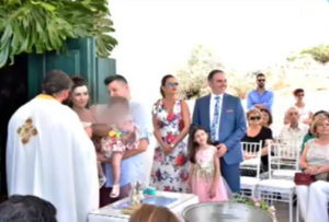 Νονοί ήταν ο Νότης Παναγιώτου και η Μαριλένα Σκυλλουριώτου. Η ίδια έλαμπε από ευτυχία φορώντας ένα λευκό φλοράλ φόρεμα. Δείτε φωτογραφίες από το ιερό μυστήριο αλλά και την διακόσμηση από την δεξίωση της βάφτισης