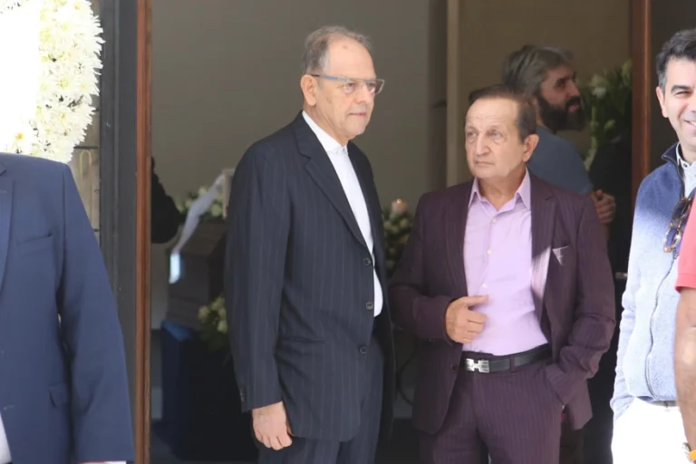 Ανάμεσα στα πρώτα πρόσωπα που βρέθηκαν στο κοιμητήριο δίπλα του για να αποχαιρετήσουν τη μητέρα του ήταν ο Αλέξανδρος Αντωνόπουλος και η Νάντια Μουρούζη, η οποία έφτασε στο σημείο κρατώντας ένα λευκό τριαντάφυλλο.