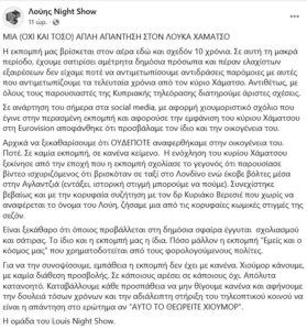 Στο επίκεντρο βρέθηκε ο Λουκάς Χάματσος και η εκπομπή Louis Night Show, μετά από νέα χιουμοριστική αναφορά του Λούη Πατσαλίδη που δεν άρεσε καθόλου στον παρουσιαστή.