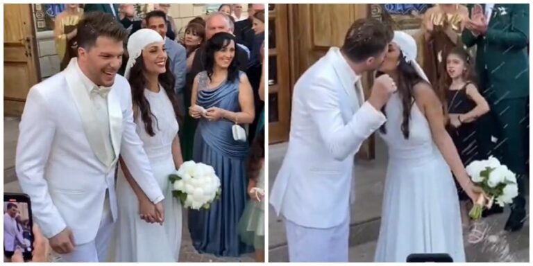 Η δικηγόρος και ο τραγουδιστής μετά την τέλεση του μυστηρίου, βγήκαν από την εκκλησία και αντάλλαξαν το πρώτο τους φιλί ως νεόνυμφοι με τους καλεσμένους να τους ρίχνουν ρύζι.