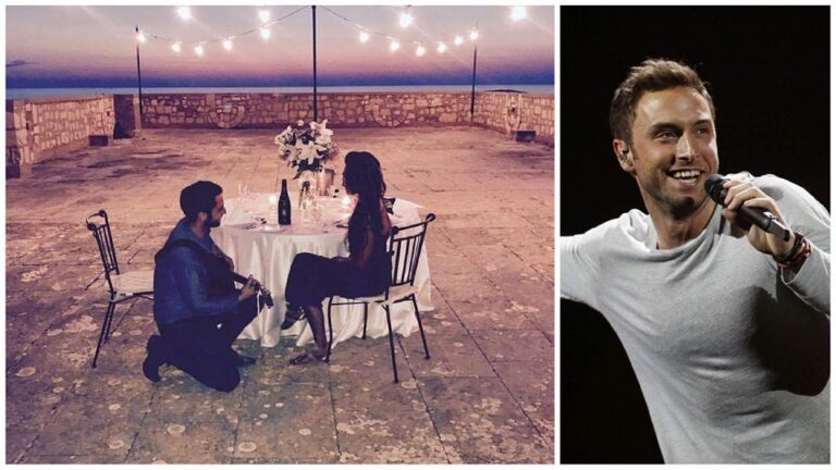 Γονατιστός, με μια κιθάρα, κρασί, ένα ηλιοβασίλεμα και μόνος του με τον έρωτα του να απολαμβάνει μια όμορφη βραδυά. Με αυτό τον μοναδικό τρόπο επέλεξε να κάνει την αγαπημένη του να πει το πολυπόθητο ” i do”