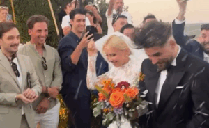 O δημοφιλής ράπερ και η νεαρή influencer ανέβηκαν τα σκαλιά της εκκλησίας με κουμπάρο τον εφοπλιστή και επενδυτή του «Dragon’s Den» Χάρη Βαφειά και τη σύζυγό του, Έμιλυ.