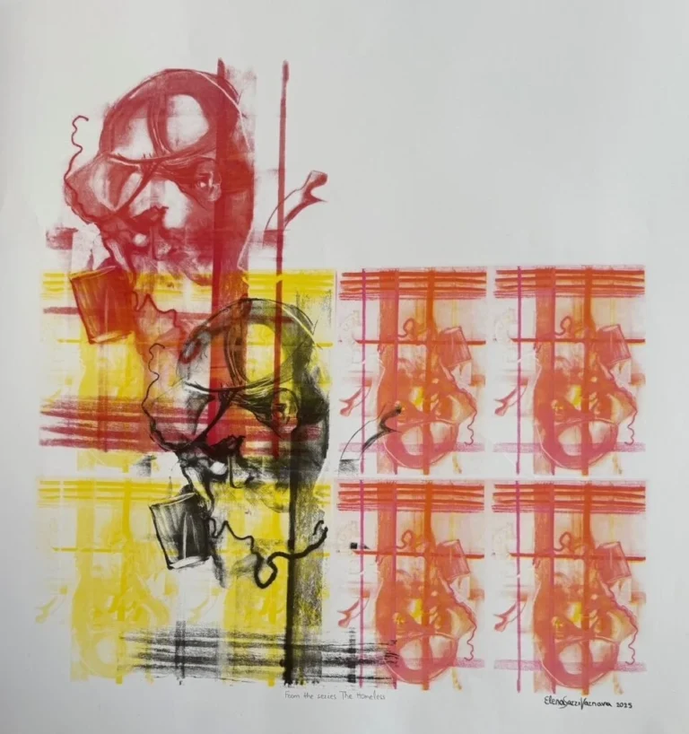 Βασικό μέσο έκφρασής της Έλενας Σαρρή Βαρνάβα είναι η χαρακτική, στην οποία έχει διακριθεί επανειλημμένα, αφού τιμήθηκε δύο φορές με το πρώτο βραβείο της Σχολής Χαρακτικής Χαμπή (για λινοτυπία το 2010, για aquatint το 2011) και μία φορά με τιμητικό δίπλωμα (για λινοτυπία το 2014). Στην παρούσα έκθεση, η καλλιτέχνις παρουσιάζει μια ολοκληρωμένη σειρά μονοτυπικών μεταξοτυπιών.
