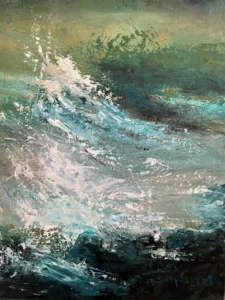 Εντυπωσιακά είναι τα ρωμαλέα κύματά της, τα οποία έχοντας τη δική τους κινητήριο δύναμη, αποδιδόμενα με σχεδόν ανάγλυφες πινελιές, κατευθύνονται προς τις ακτές, κάποτε παρούσες στις συνθέσεις και άλλοτε αθέατες. Η παλέτα της περιλαμβάνει αποχρώσεις του μπλε, του καφέ της αμμουδιάς και λευκό. Ενίοτε όμως, έργα με πιο εκρηκτικό χαρακτήρα αποδίδονται με συμπληρωματικά χρώματα, δηλαδή το μπλε και το σμαραγδί συνυπάρχουν με το κόκκινο και το πορτοκαλί. Δε λείπουν ωστόσο και τα ήσυχα έργα, τα οποία η ζωγράφος εκτελεί με απαλά και γήινα χρώματα.