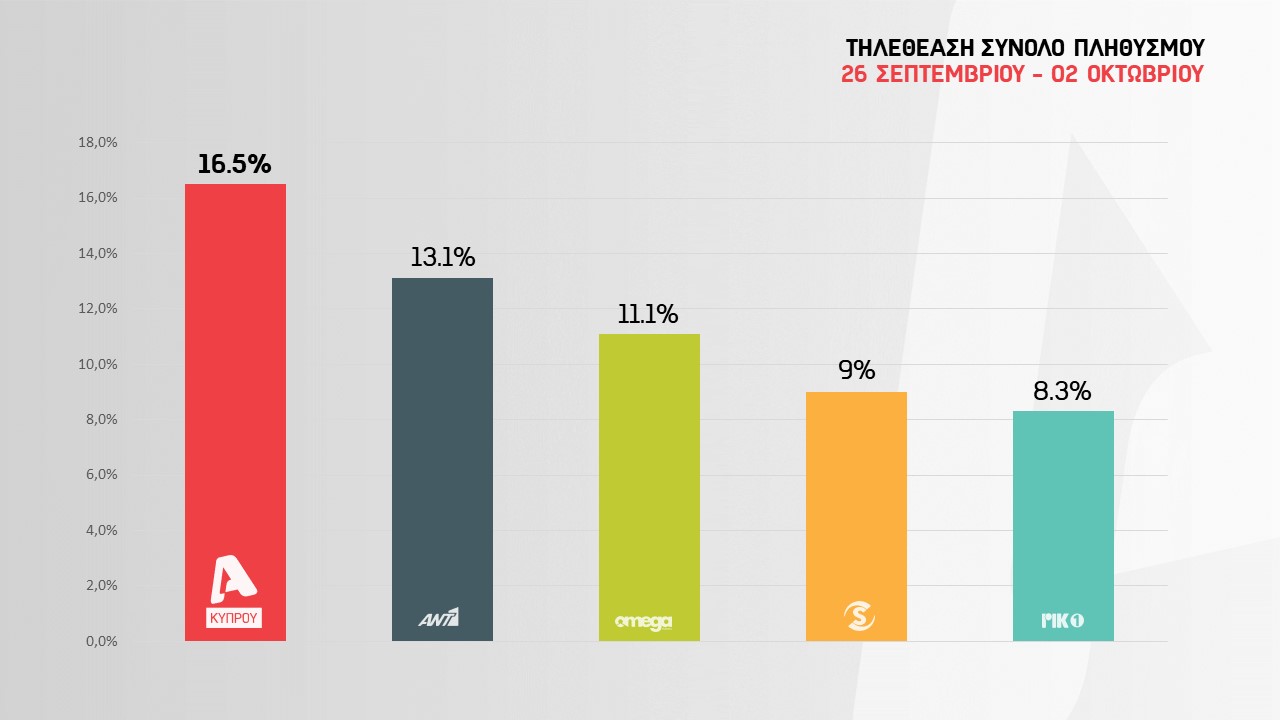 Η νέα σεζόν «μπήκε με το δεξί» για το κανάλι αφού το σύνολο του πληθυσμού της Κύπρου επέλεξε το… Alpha – Alpha πρόγραμμά του, και μένοντας “κολλημένο” στους δέκτες του από το πρωί μέχρι το βράδυ.