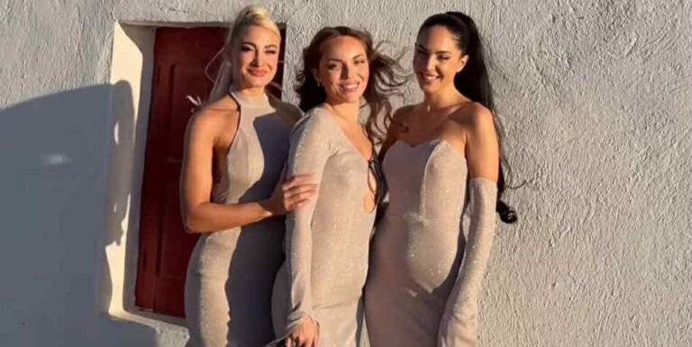 Στο υλικό που αναρτήθηκε, οι τρεις νονές εμφανίζονται ντυμένες με ασορτί μακριά μπεζ φορέματα, όπως και η μητέρα του παιδιού. Φυσικά, από το πλευρό της Ιωάννας Τούνη όπως φαίνεται και στις φωτογραφίες, δεν έλειπε ο γιος της, Πάρης.