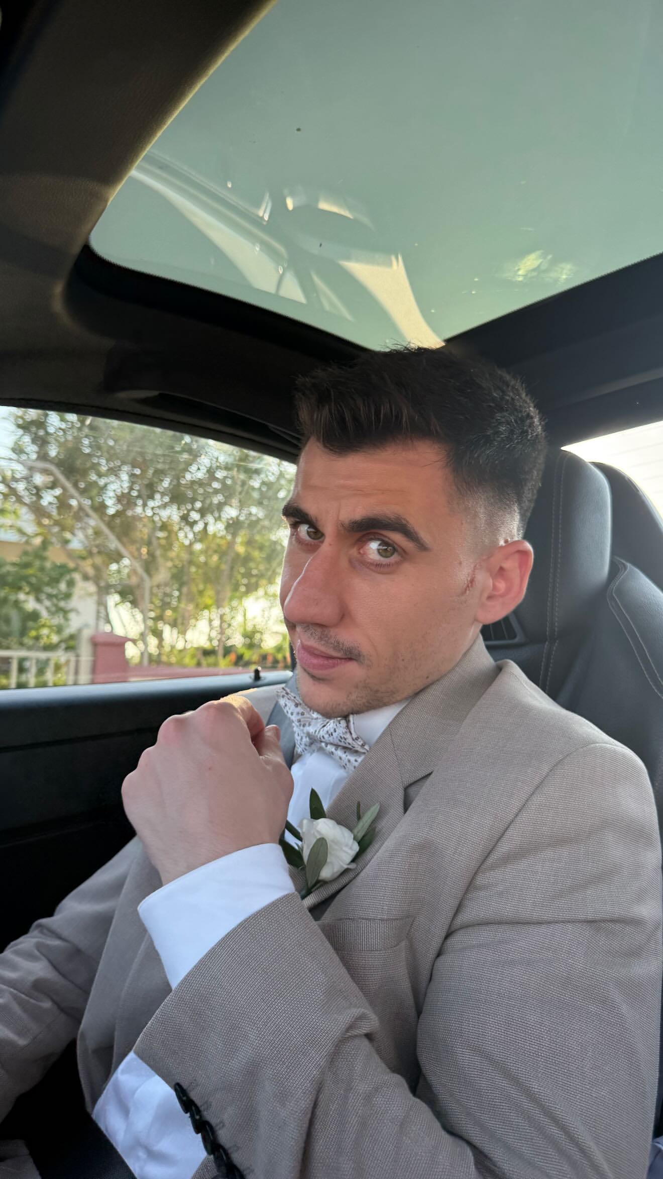Η σύντροφός του, Στυλιάνα Αβερκίου, μοιράστηκε στα social media μερικές από τις πιο τρυφερές και αυθόρμητες στιγμές της ημέρας, από τον Φειδία να βοηθάει τον γαμπρό, μέχρι τη στιγμή που τον κρατούσε στον χορό του Ησαΐα, ως κουμπάρος.