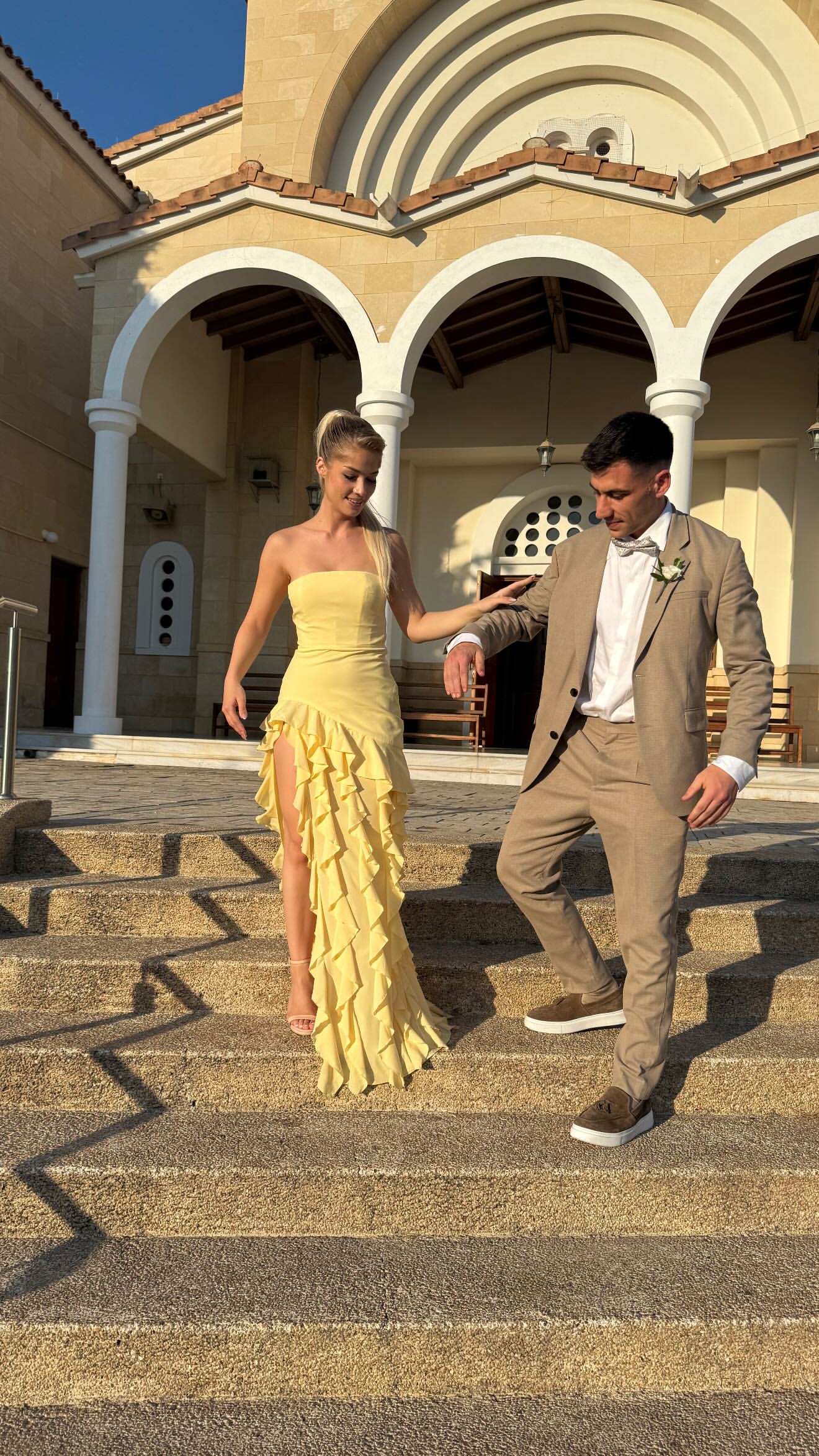 Το ζευγάρι φωτογραφήθηκε και έξω από τον ναό, με τη Στυλιάνα να ανεβάζει story γράφοντας: «Κάποτε θα με περιμένει έτσι», αφήνοντας να εννοηθεί πως ο ρόλος του γαμπρού… δεν είναι μακριά για τον Φειδία.