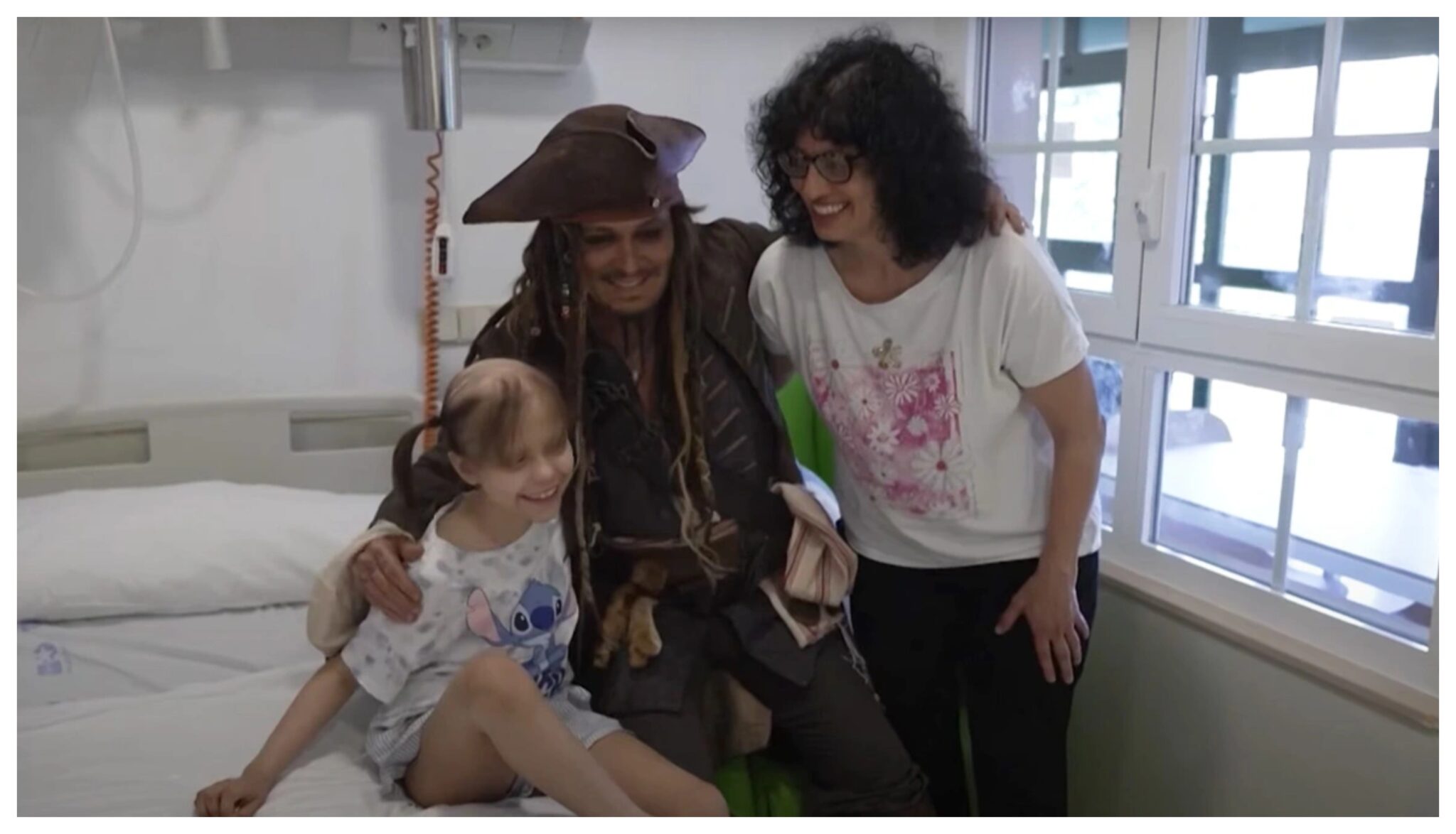 Ο 62χρονος ηθοποιός, που βρίσκεται στην Ισπανία για τα γυρίσματα της νέας του ταινίας «Day Drinker», φόρεσε τη στολή του διάσημου ρόλου από τους «Πειρατές της Καραϊβικής» και συνάντησε πριν από μερικές μέρες τους μικρούς ασθενείς στα δωμάτιά τους, με εκείνους να αντιδρούν με χαρά και έκπληξη.