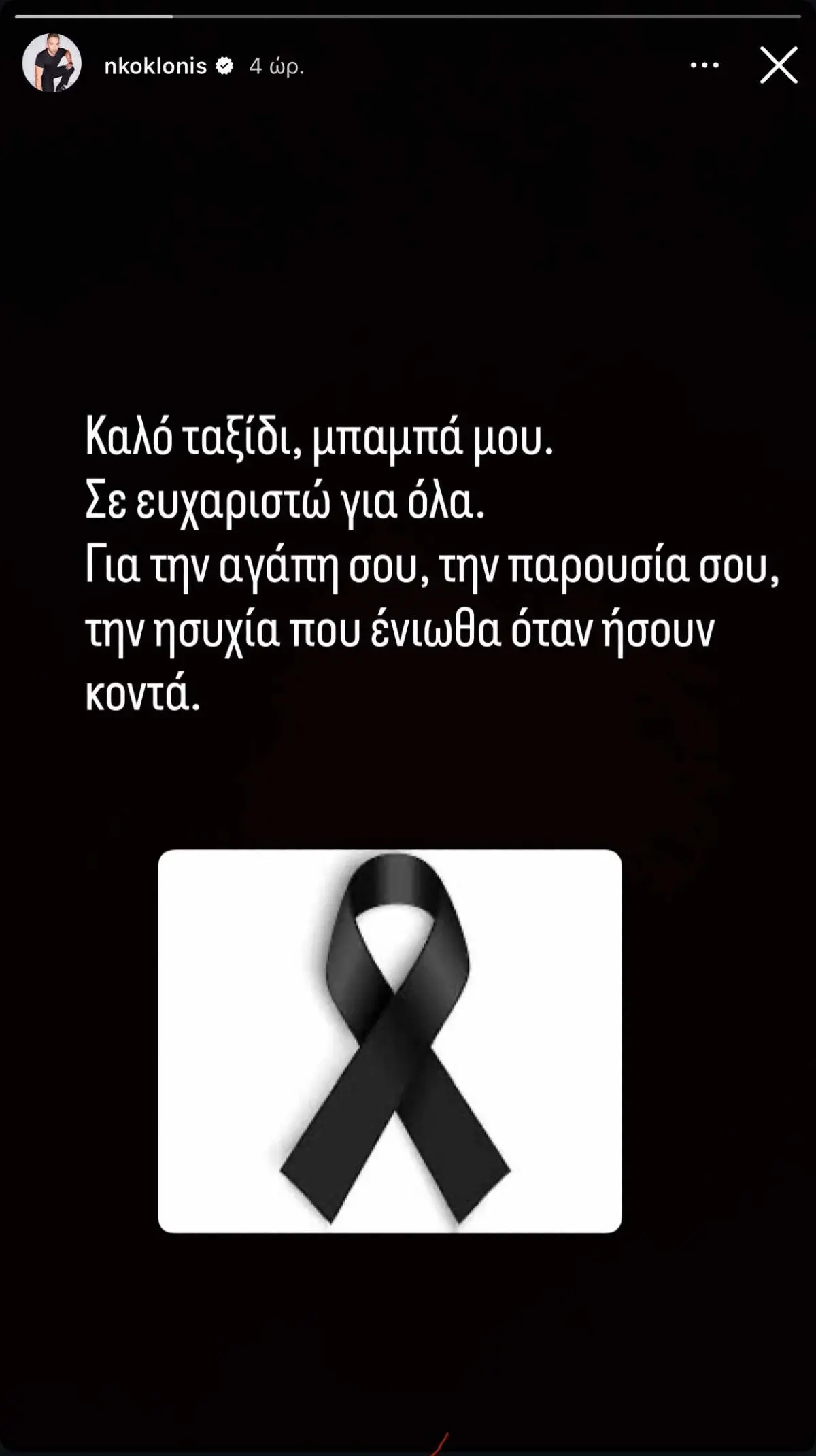 Δύσκολη Κυριακή ξημέρωσε σήμερα. 6 Ιουλίου, για τον Νίκο Κοκλώνη, καθώς όπως έκανε γνωστό ο ίδιος μέσα από μία ανάρτηση στον προσωπικό του λογαριασμό στο Instagram, έφυγε από τη ζωή ο αγαπημένος του πατέρας.