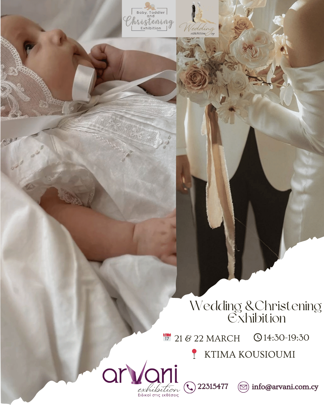 - με ενημέρωση για προϊόντα και υπηρεσίες που αφορούν την οργάνωση του γάμου σας, την βάφτιση του μωρού σας ή την γέννηση του. μαζί θα οργανώσουμε τις πιο όμορφες στιγμές της ζωής σας σε μια ολοκληρωμένη έκθεση.
