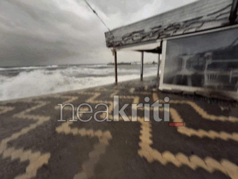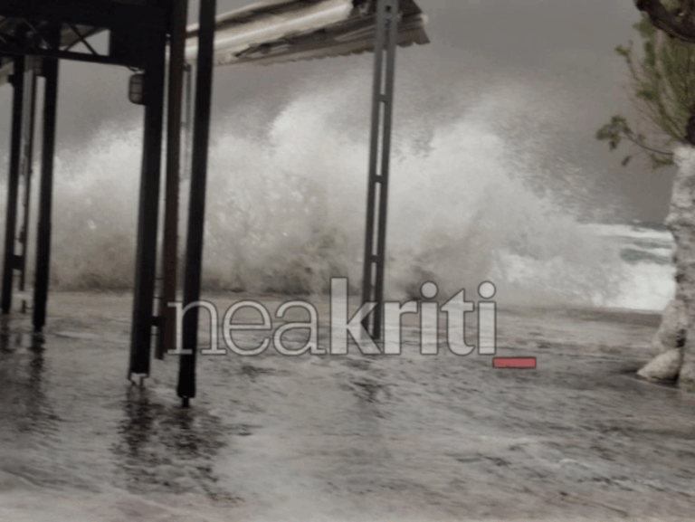 • Σφοδρή κακοκαιρία πλήττει την Ιεράπετρα, με κύματα να φτάνουν στα πρώτα σπίτια της παλιάς πόλης.