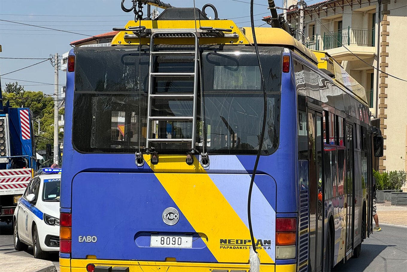 Την ώρα που το όχημα κινούνταν, η ένταση φαίνεται πως κορυφώθηκε, με αποτέλεσμα ο οδηγός να χάσει τον έλεγχο του τρόλεϊ με αποτέλεσμα αυτό να ξεφύγει από την πορεία του, να ανέβει στο πεζοδρόμιο και να προσκρούσει σε κολώνα της ΔΕΗ.
