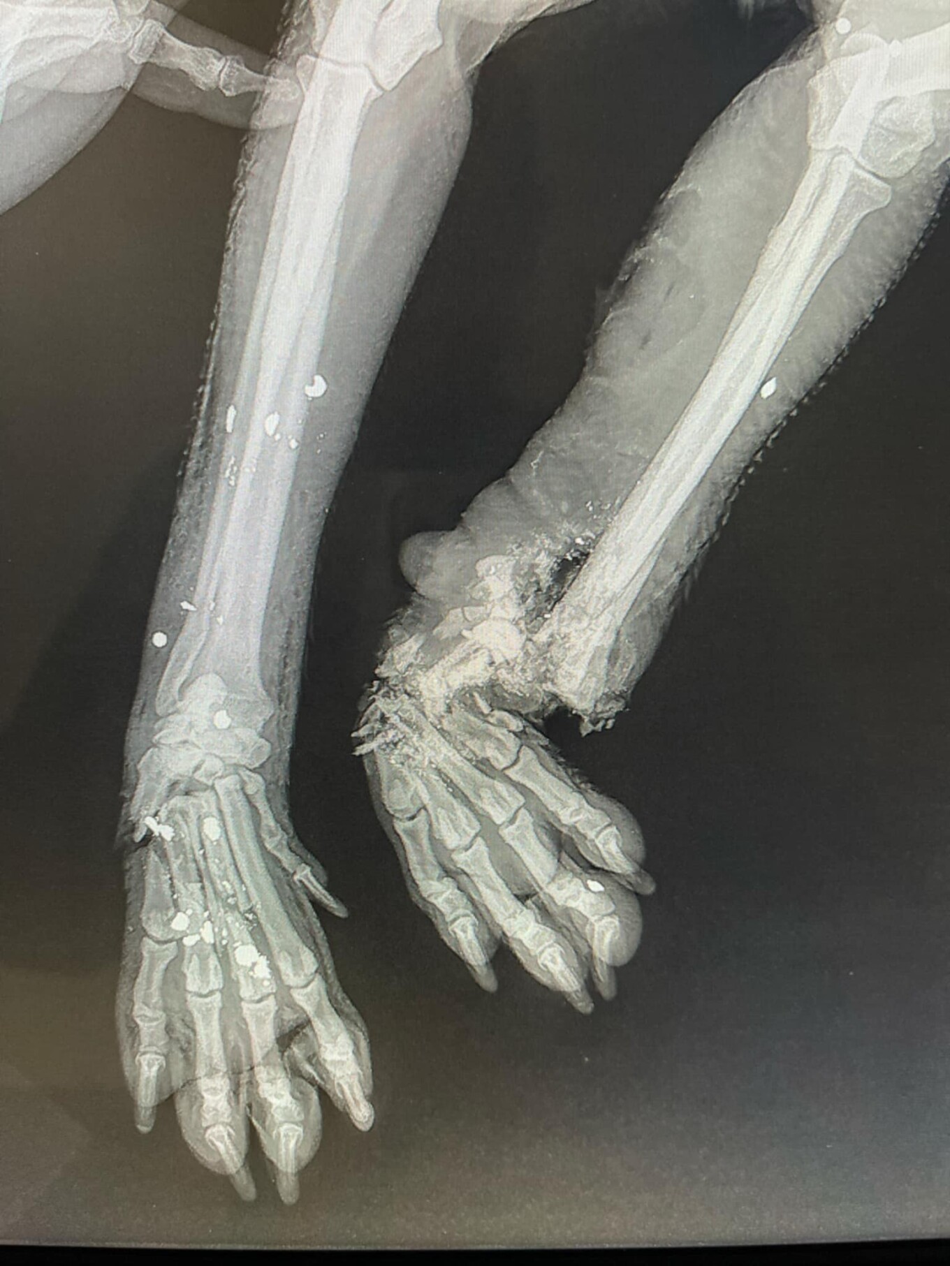 Ο δράστης της ακραίας κτηνωδίας παραμένει άγνωστος, τη στιγμή που η δίχρονη σκυλίτσα, με τρία πόδια πλέον, δίνει μάχη.