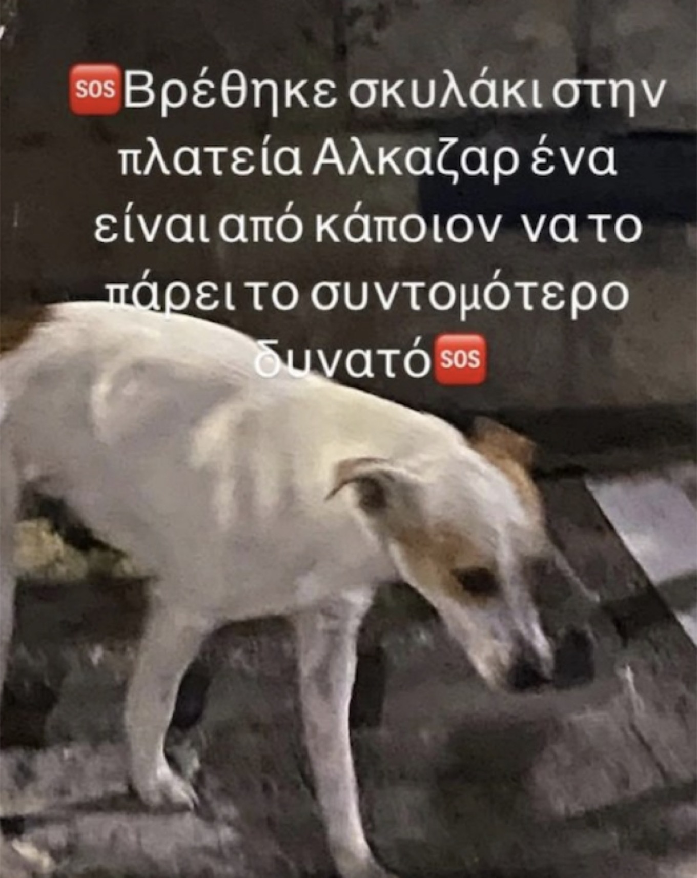 Ο σκύλος κυκλοφορεί εδώ και μέρες στην συνοικία του Ιπποκράτη και στο Αλκαζάρ, ενώ έχουν γίνει αναρτήσεις στα κοινωνικά μέσα δικτύωσης προκειμένου να βρεθεί ο ιδιοκτήτης του, χωρίς όμως αποτέλεσμα.