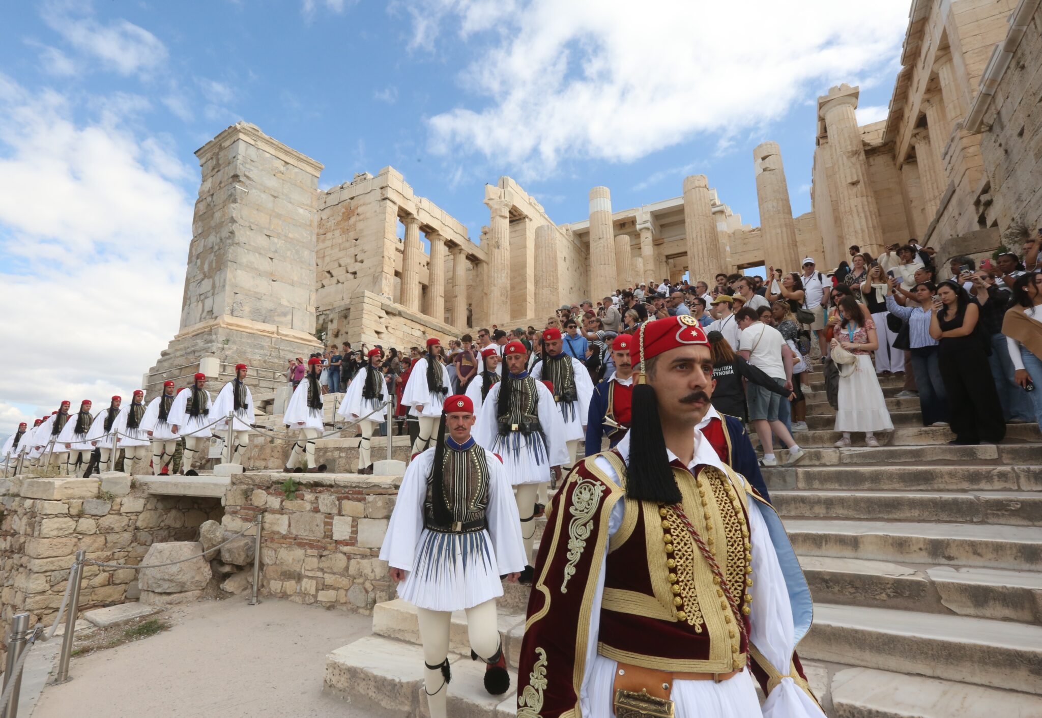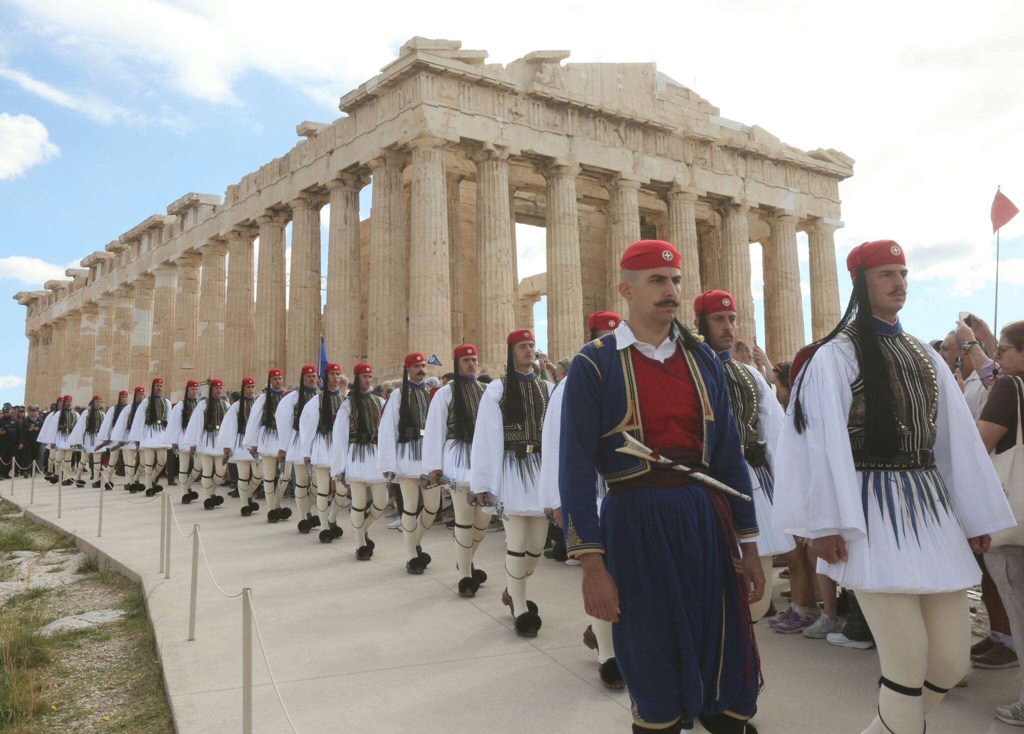 Με λαμπρότητα πραγματοποιήθηκε η τελετή έπαρσης της ελληνικής σημαίας στον Ιερό Βράχο της Ακρόπολης, στο πλαίσιο του εορτασμού της 81ης επετείου της Απελευθέρωσης των Αθηνών.
