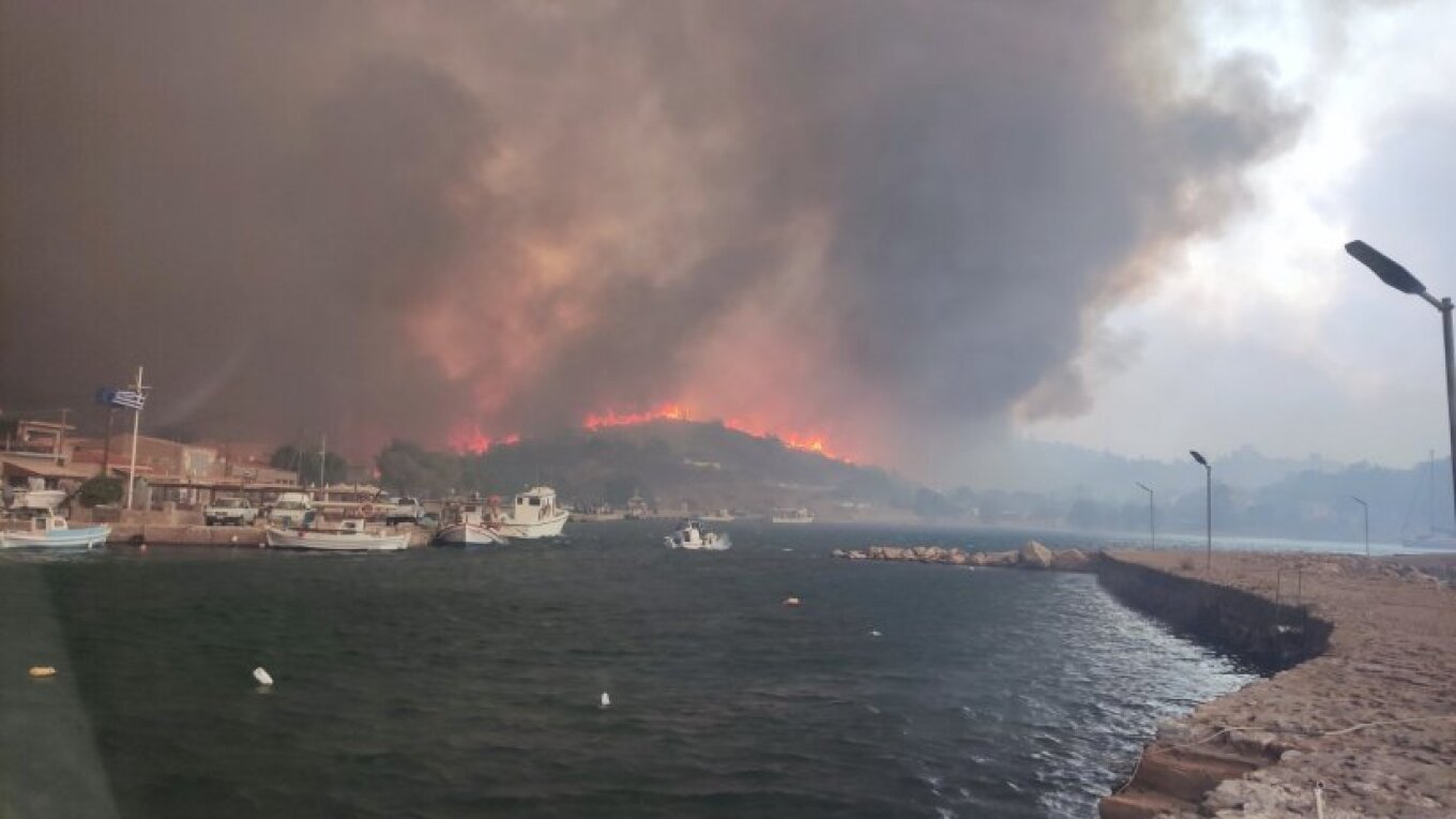 Ιδιαίτερα δύσκολη χαρακτηρίζεται και η κατάσταση στη Χίο, με την πυρκαγιά να μαίνεται σε τρία μέτωπα. Από το απόγευμα της Τρίτης, το Λιμενικό απεγκλωβίζει κόσμο που βρίσκεται στις παραλίες Λήμνια και Αγία Μαρκέλα.