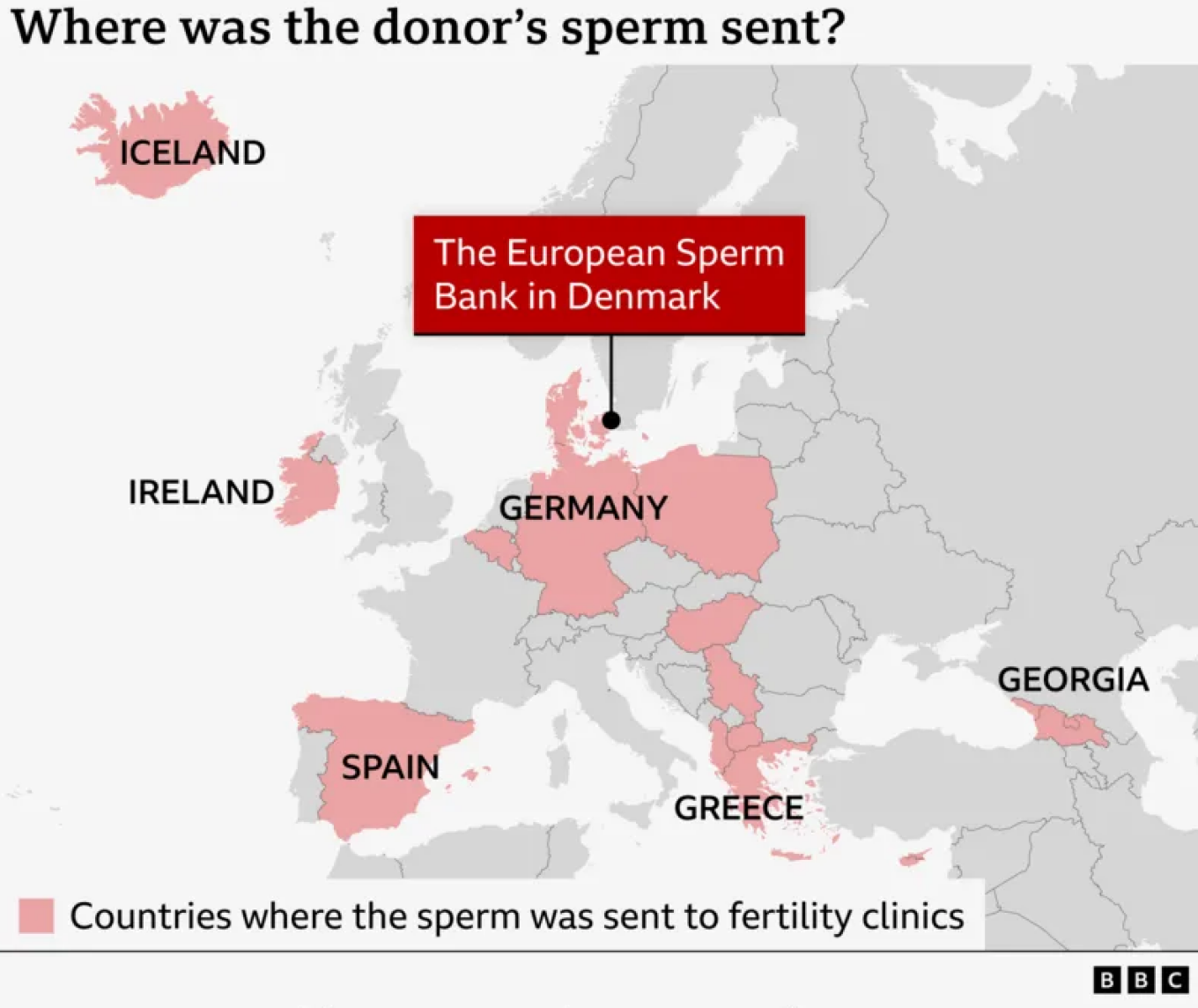 Η Ευρωπαϊκή Τράπεζα Σπέρματος της Δανίας, η οποία πούλησε το σπέρμα, δήλωσε ότι οι οικογένειες που επηρεάστηκαν έχουν τη «βαθιά συμπάθειά» της και παραδέχτηκε ότι το σπέρμα χρησιμοποιήθηκε για τη γέννηση πάρα πολλών μωρών σε ορισμένες χώρες, ανάμεσά τους και η Ελλάδα όπως αποτυπώνεται στον χάρη του BBC.