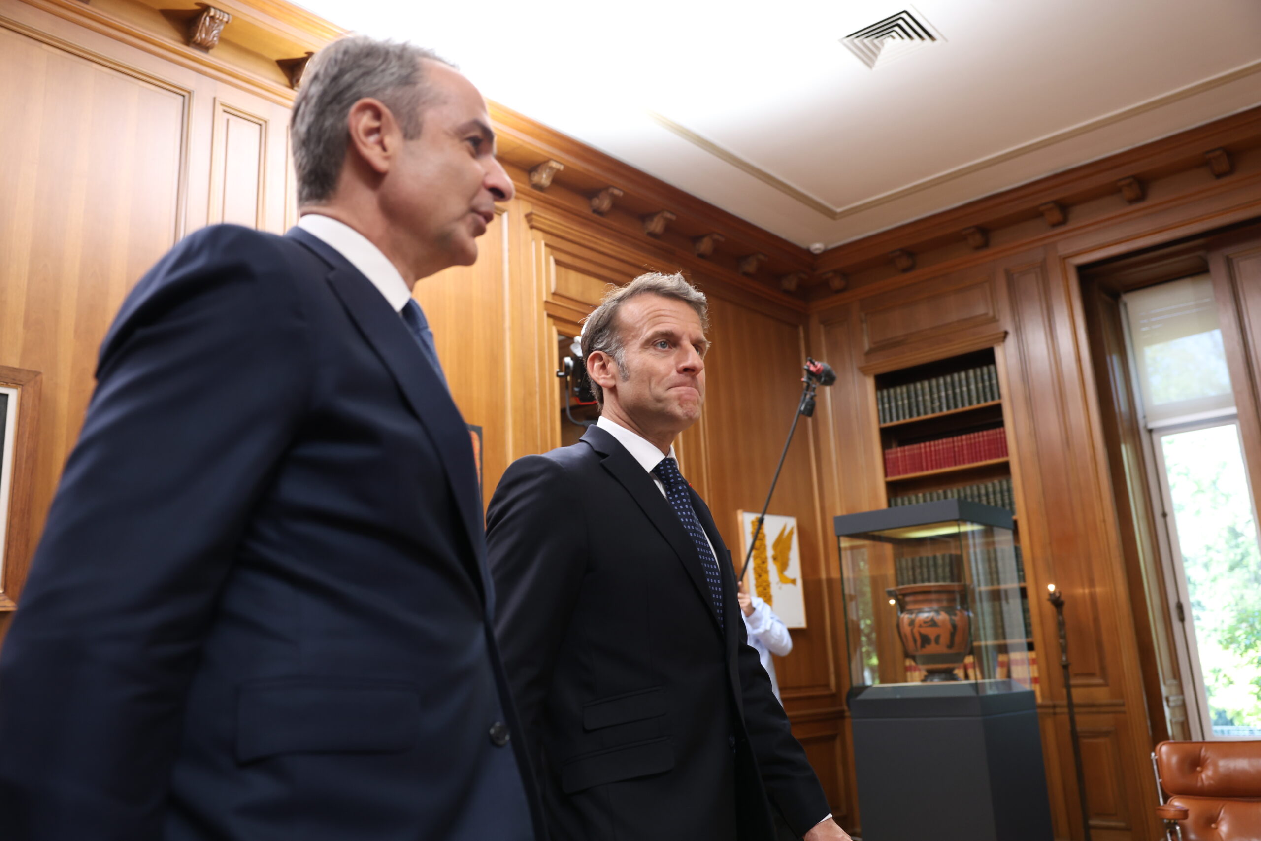 Η συνομιλία Μητσοτάκη-Μακρόν στην αρχή της συνάντησής τους στο Μέγαρο Μαξίμου