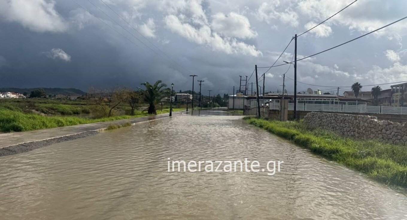 Πλημμύρισαν δρόμοι στη Ζάκυνθο