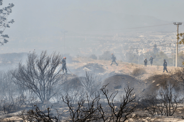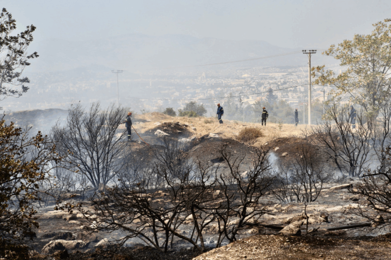 Οριοθετήθηκε η φωτιά στους πρόποδες του Υμηττού, γύρω στις 15:30 το μεσημέρι.
