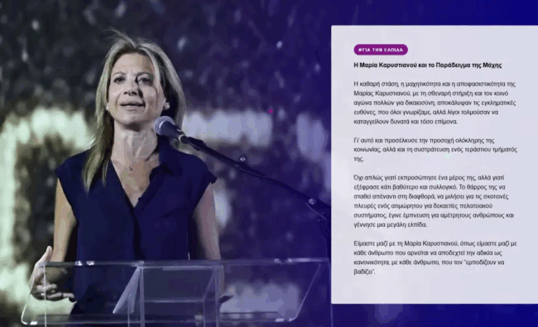 Μάλιστα στο σάιτ xekiname.grη Μαρία Καρυστιανού περιλαμβάνει και τις βασικές πληροφορίες για την φυσιογνωμία και τις θέσεις της.