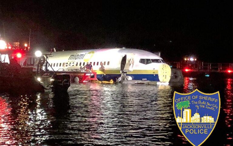 Ένα αεροσκάφος Boeing 737 στο οποίο επέβαιναν 136 επιβάτες και 7 μέλη του πληρώματος, ξέφυγε χθες λίγο μετά τις 9:00 το βράδυ, από τον διάδρομο προσγείωσης κοντά στο Τζάκσονβιλ της Φλόριντα και κατέληξε στον ποταμό Σεντ Τζονς.
