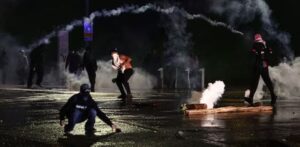 Στο τέλος πορείας αλληλεγγύης στον παλαιστινιακό λαό, μικρή ομάδα συμμετεχόντων με καλυμμένα πρόσωπα πέταξε αντικείμενα κι έριξε κιγκλιδώματα που είχαν τοποθετηθεί προς την κατεύθυνση οχημάτων της αστυνομίας. Αστυνομικοί αντέδρασαν κάνοντας χρήση ροπάλων και ρίψη δακρυγόνων.