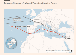 Το αεροπλάνο του Ισραηλινού Πρωθυπουργού, Βενιαμίν Νετανιάχου, ακολούθησε μια ασυνήθιστη διαδρομή προς τη Νέα Υόρκη, την Πέμπτη, παρακάμπτοντας αρκετές ευρωπαϊκές χώρες καθ’ οδόν προς τη Γενική Συνέλευση των Ηνωμένων Εθνών.