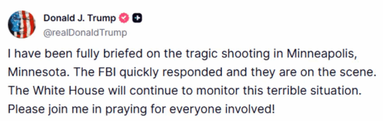 Ο Ντόναλντ Τραμπ σε ανάρτησή του δηλώνει ότι έχει «ενημερωθεί πλήρως» για την ένοπλη επίθεση. Προσθέτει ότι το FBI «αντέδρασε γρήγορα» και βρίσκεται ήδη στον τόπο του συμβάντος.