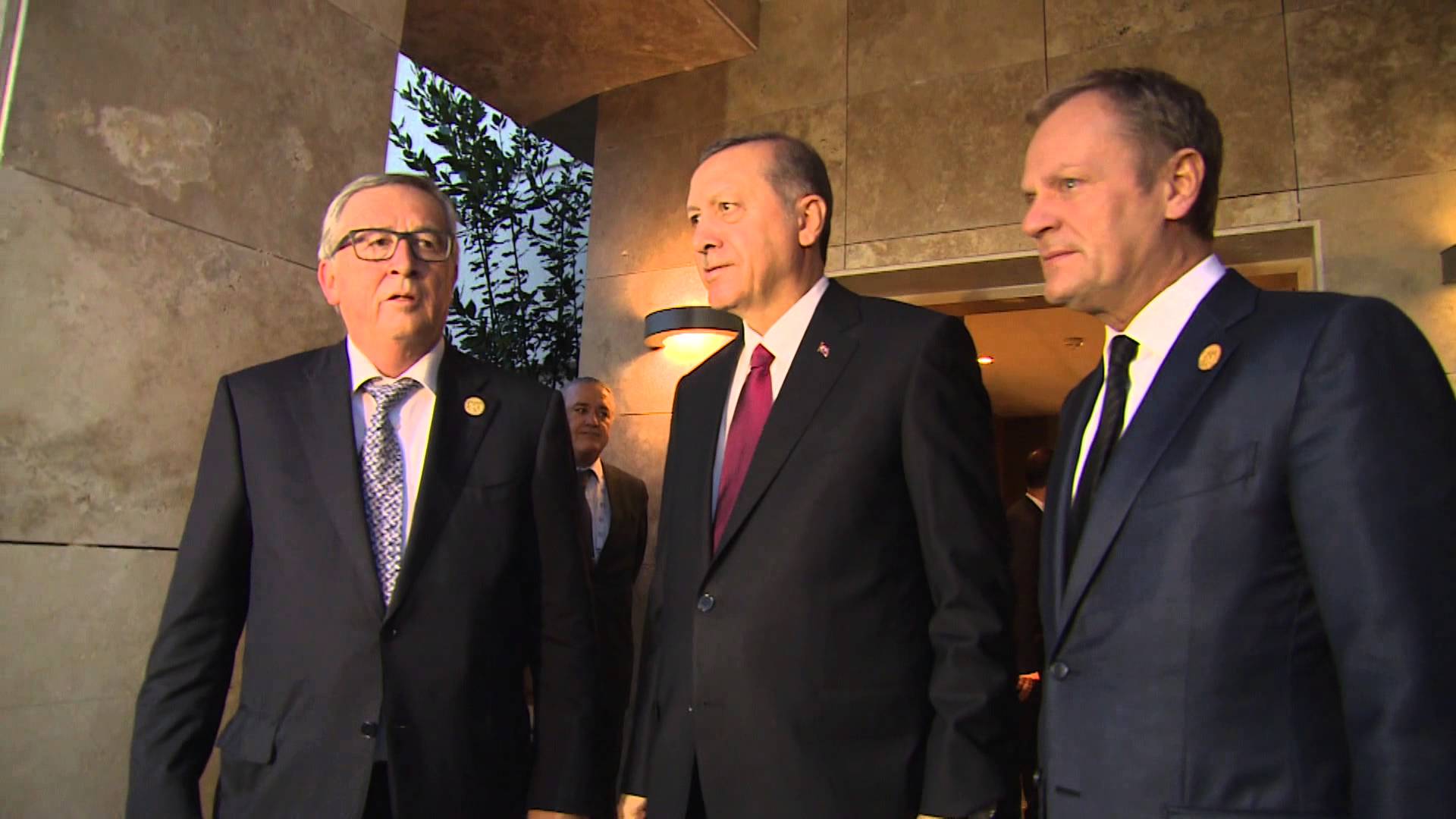 Άκρως σημαντική για το μέλλον των ευρωτουρκικών σχέσεων κρίνεται η συνάντηση του Τούρκου Προέδρου με τον Ντόναλτ Τουσκ και τον Ζαν-Κλοντ Γιούνκερ το απόγευμα στις Βρυξέλλες. Η συνάντηση πραγματοποιείται στα πλαίσια της Συνόδου του ΝΑΤΟ.