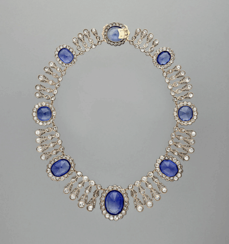Το κολιέ από το σετ με ζαφείρια της βασίλισσας Μαρίας Αμαλίας και της βασίλισσας Ορτάνς: