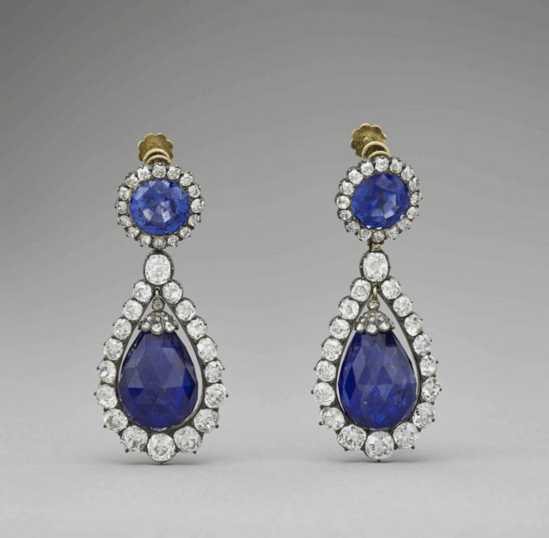 Το χαρακτηριστικό μπλε χρώμα στο συγκεκριμένο σετ οφείλεται στα ζαφείρια Κεϋλάνης.