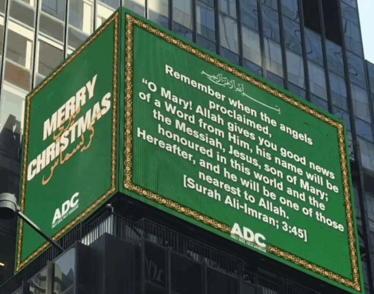 Από την πλευρά του ο εκτελεστικός διευθυντής της ADC, Αντέμπ Αγιουμπ, υποστήριξε ότι η πινακίδα δεν είχε ως στόχο να προκαλέσει διχασμό, αλλά να βοηθήσει τις χριστιανικές, αραβικές και μουσουλμανικές κοινότητες στις ΗΠΑ να αναγνωρίσουν τις «ομοιότητες» μεταξύ των πολιτισμών τους.
