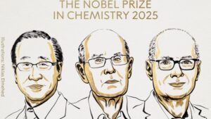Οι επιστήμονες Σουσούμου Κιταγκάουα, Ρίτσαρντ Ρόμπσον και Όμαρ Γιάγκι κέρδισαν το φετινό βραβείο Νόμπελ Χημείας για την «ανάπτυξη μεταλλο-οργανικών πλαισίων», όπως ανακοίνωσε σήμερα η Βασιλική Σουηδική Ακαδημία Επιστημών.