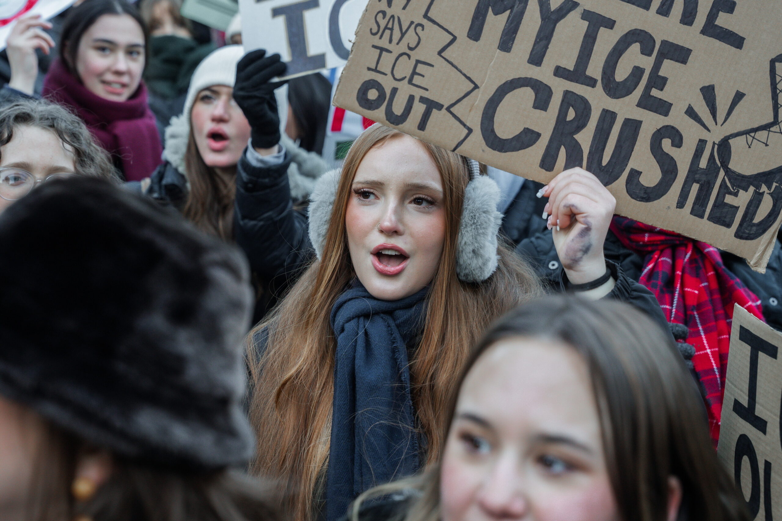 Διαμαρτυρόμενοι για την ανάπτυξη και τις τακτικές που χρησιμοποιεί η αστυνομία μετανάστευσης ICE, χιλιάδες άνθρωποι συγκεντρώθηκαν στο κέντρο της Μινεάπολης παρά το έντονο κρύο, μεταξύ των οποίων οικογένειες με μικρά παιδιά, ζευγάρια ηλικιωμένων και νεαροί ακτιβιστές.