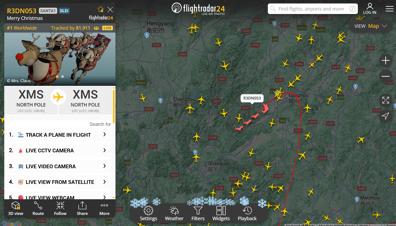 Παραμονή Χριστουγέννων, την ώρα που μικροί και μεγάλοι μετρούν αντίστροφα για τα δώρα και τη μαγεία της συγκεκριμένης ημέρας, το FlightRadar 24 δίνει τη δυνατότητα στους πιο ανυπόμονους να παρακολουθήσουν σε ζωντανό χρόνο την πιο διάσημη «πτήση» του πλανήτη, εκείνη του Αγίου Βασίλη.