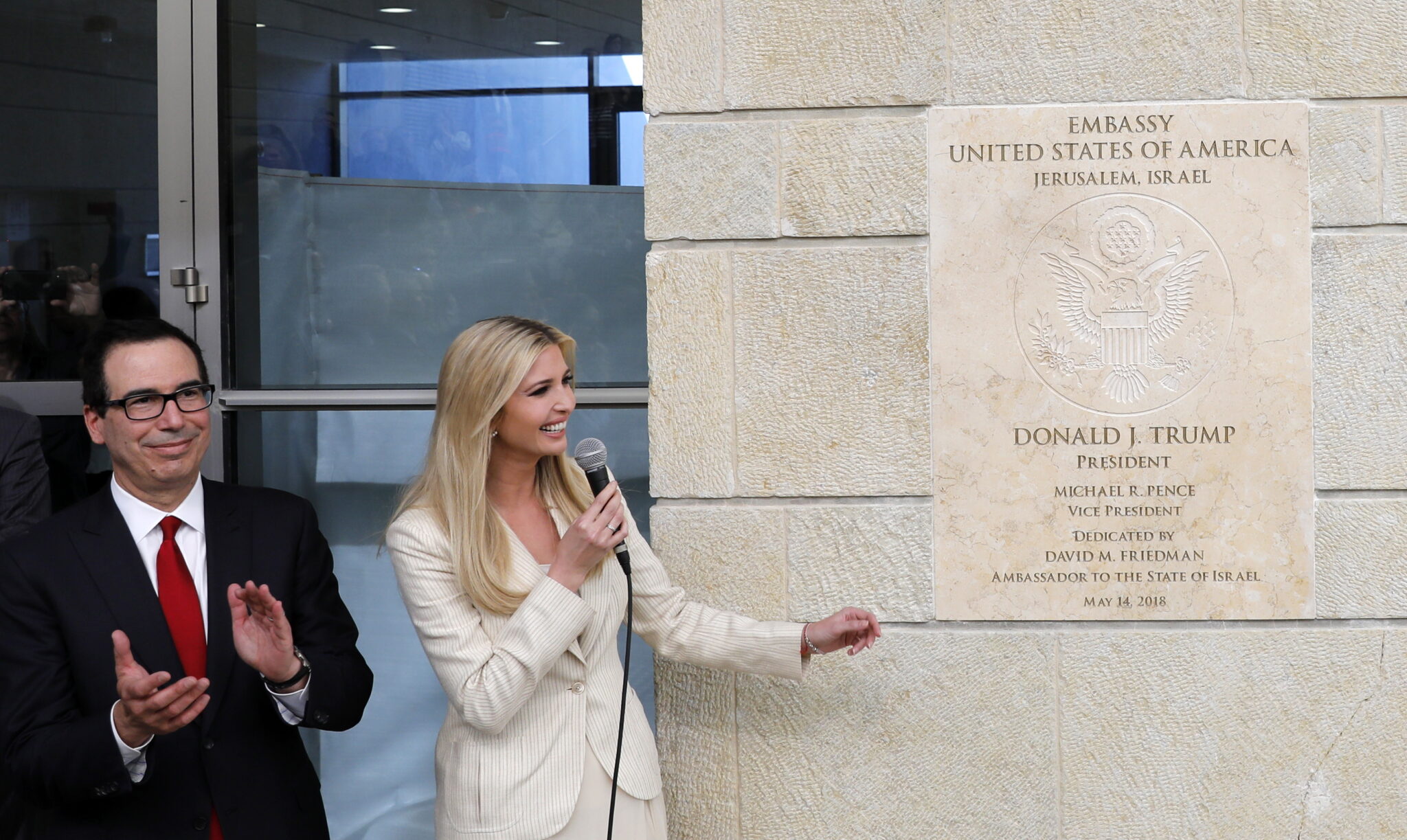 Η σημερινή τελετή συμπίπτει με τη φονικότερη ημέρα της ισραηλινοπαλαιστινιακής διένεξης από το 2014. Δεκάδες Παλαιστίνιοι διαδηλωτές σκοτώθηκαν από πυρά των Ισραηλινών στρατιωτών κατά τη διάρκεια διαδηλώσεων στη Λωρίδα της Γάζας.