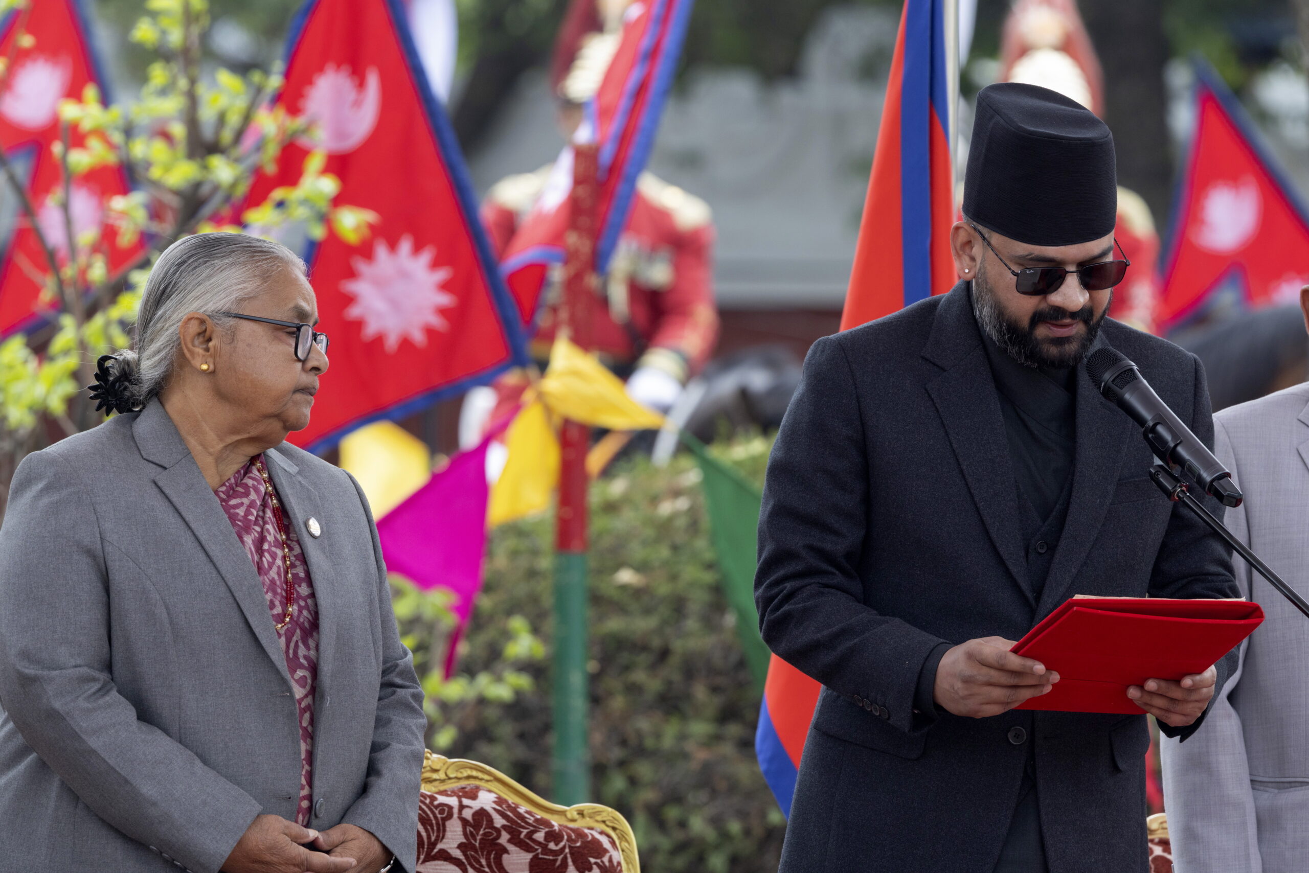 Ο Σαχ, ο οποίος φορούσε στενό μαύρο παντελόνι με ασορτί σακάκι, το χαρακτηριστικό νεπαλέζικο υφασμάτινο καπέλο και γυαλιά ηλίου, ορκίστηκε στο Προεδρικό Μέγαρο παρουσία διπλωματών και ανώτερων κυβερνητικών αξιωματούχων.