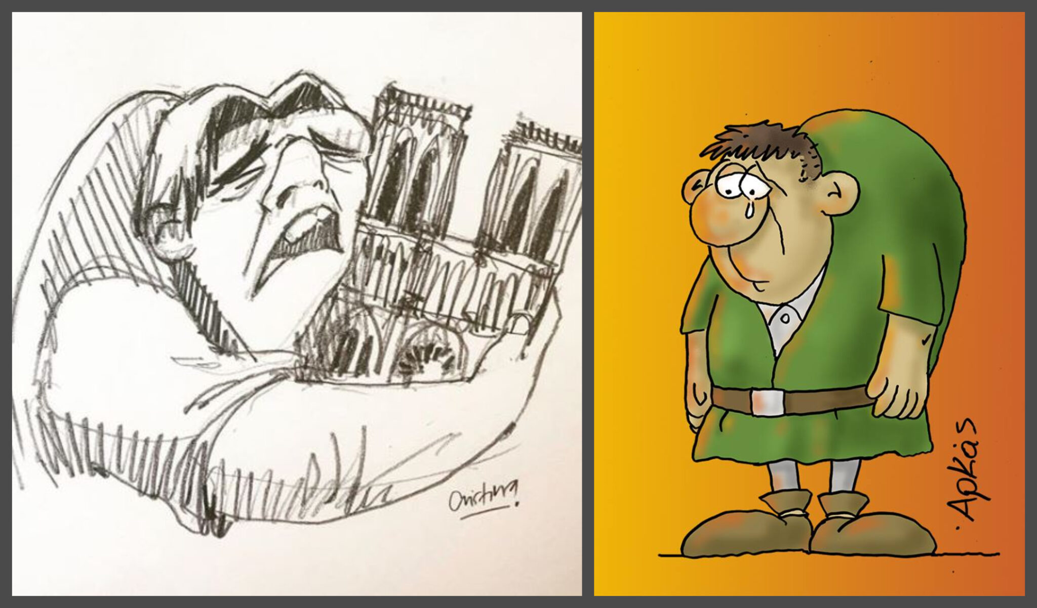 Πηγή έμπνευσης για δεκάδες ζωγράφους και σκιτσογράφους σε όλο τον κόσμο, αποτέλεσαν οι συγκλονιστικές εικόνες καταστροφής της Παναγίας των Παρισίων από την τεραστίων διαστάσεων πυρκαγιά που ξέσπασε στην οροφή του ιστορικού ναού και προκάλεσε σοβαρές ζημιές στο αρχαίο κτίσμα.