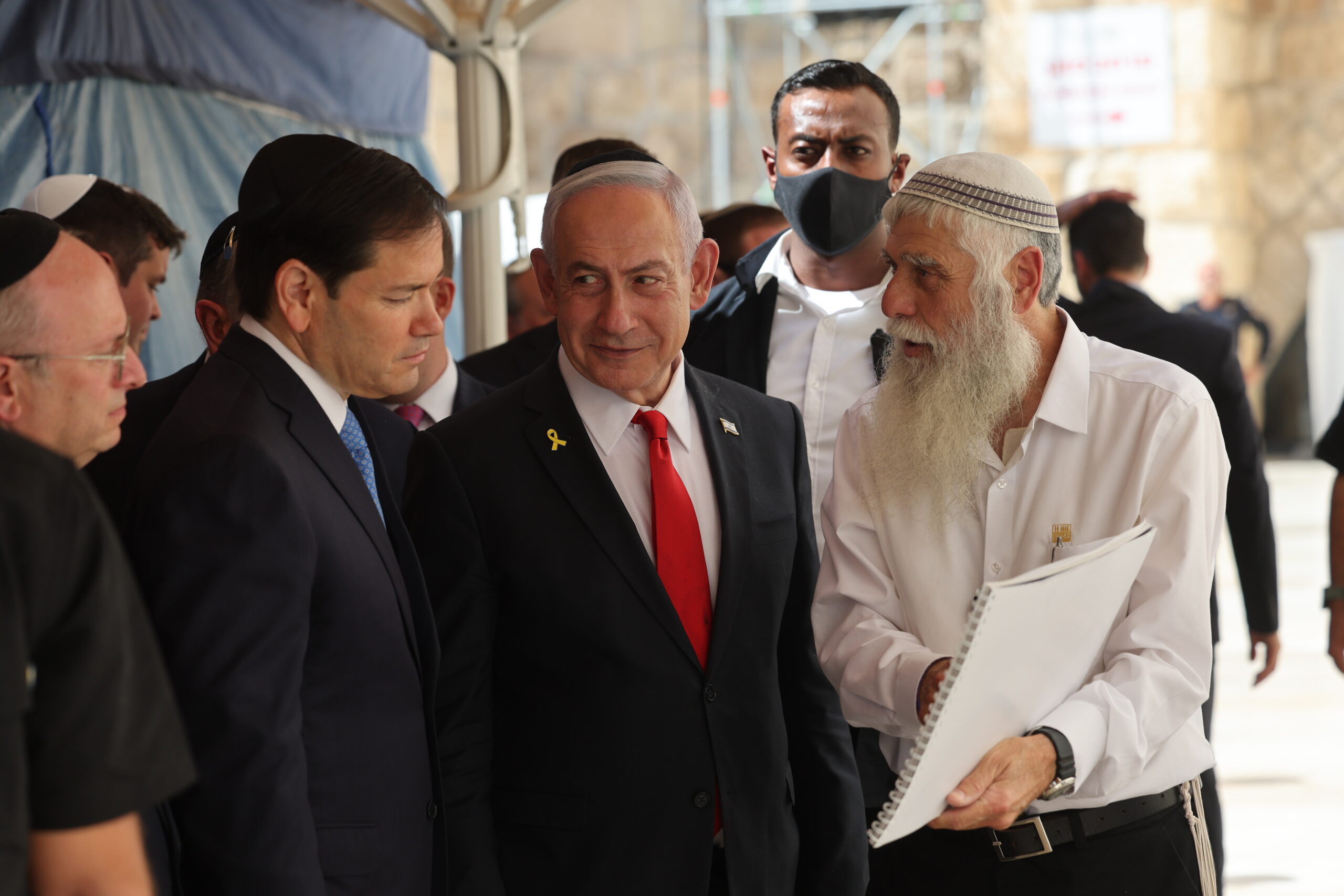 Το Δυτικό Τείχος της Ιερουσαλήμ, το οποίο εφάπτεται το Όρους του Ναού, του ιερότερου σημείου της ιουδαϊκής πίστης, επισκέφθηκε ο Υπουργός Εξωτερικών των ΗΠΑ Μάρκο Ρούμπιο, συνοδευόμενος από τον Πρωθυπουργό του Ισραήλ Βενιαμίν Νετανιάχου.
